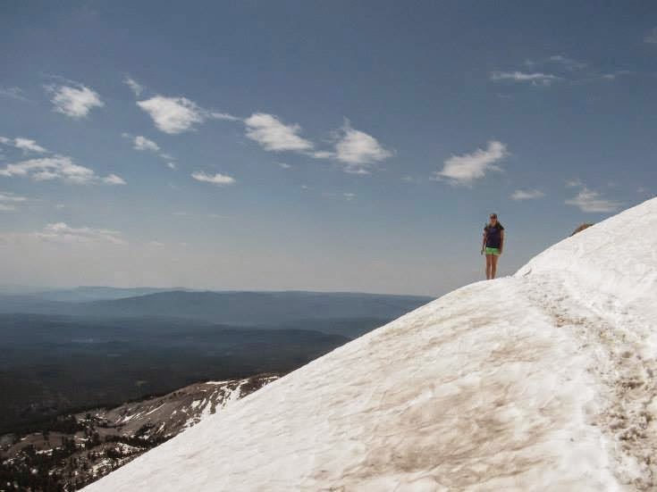 At the top we were not only be rewarded with a beautiful view of the park, but also of the snow-capped Mount Shasta to the north, the first of the Cascade range. I thought this hike was unique, and some what scary, for another reason. To reach the summit, we had to hike over sections of wet slippery snow. As I said before, this is in July. As a Florida girl, I am always captivated by snow in whatever way I get to play with it. This was the first time I got to hike in it. Despite the presence of snow, the ascent and summit were rather warm. I was wearing running shorts and a t-shirt, as can be seen in photos below. The only time I was even close to chilly was when I laid down in the snow. While Lassen Peak requires some gumption to ascend, the summit it worth the effort.