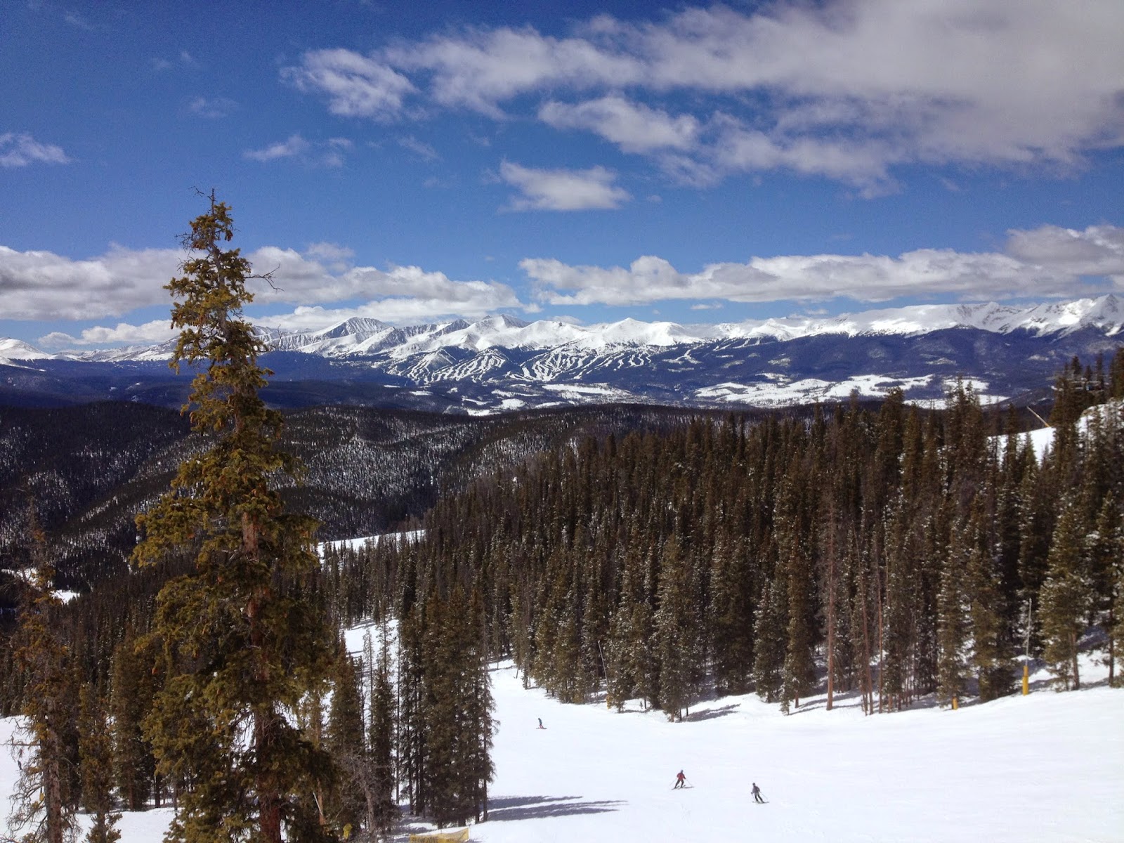 | Breckenridge's various peaks in the distance over a run at Keystone. |