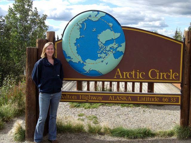Me posing at the Arctic Circle sign on the Dalton Highway.
