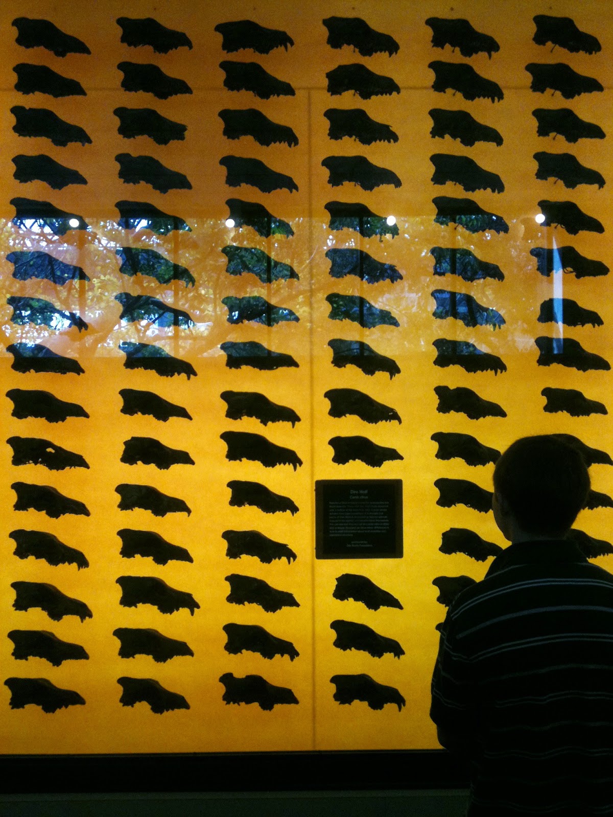 | The impressive backlit display of Dire Wolf skulls in the Page Museum. |