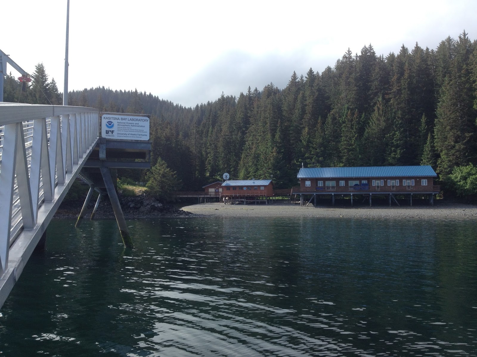 Kasitsna Bay is on the west coast of the Kenai Peninsula. It is backed by mountains and abundant wildlife due to the rainforest like character of the peninsula. There are more black bears in this area than people. Last time I was here two years ago I saw a mother black bear cross the road with her two cubs. I've also seen more wild sea otters and bald eagles in this area in two weeks than I ever thought I would see in my life. The sea otter population in this area skyrocketed after the Exxon Valdez oil spill, when thousands of sea otters were relocated to this area. The locals call them sea rats or speed bump (for boats, jokingly of course). Some of my fellow researchers have encountered some rather fearless sea otters who hopped on the dock with him, probably begging for food.