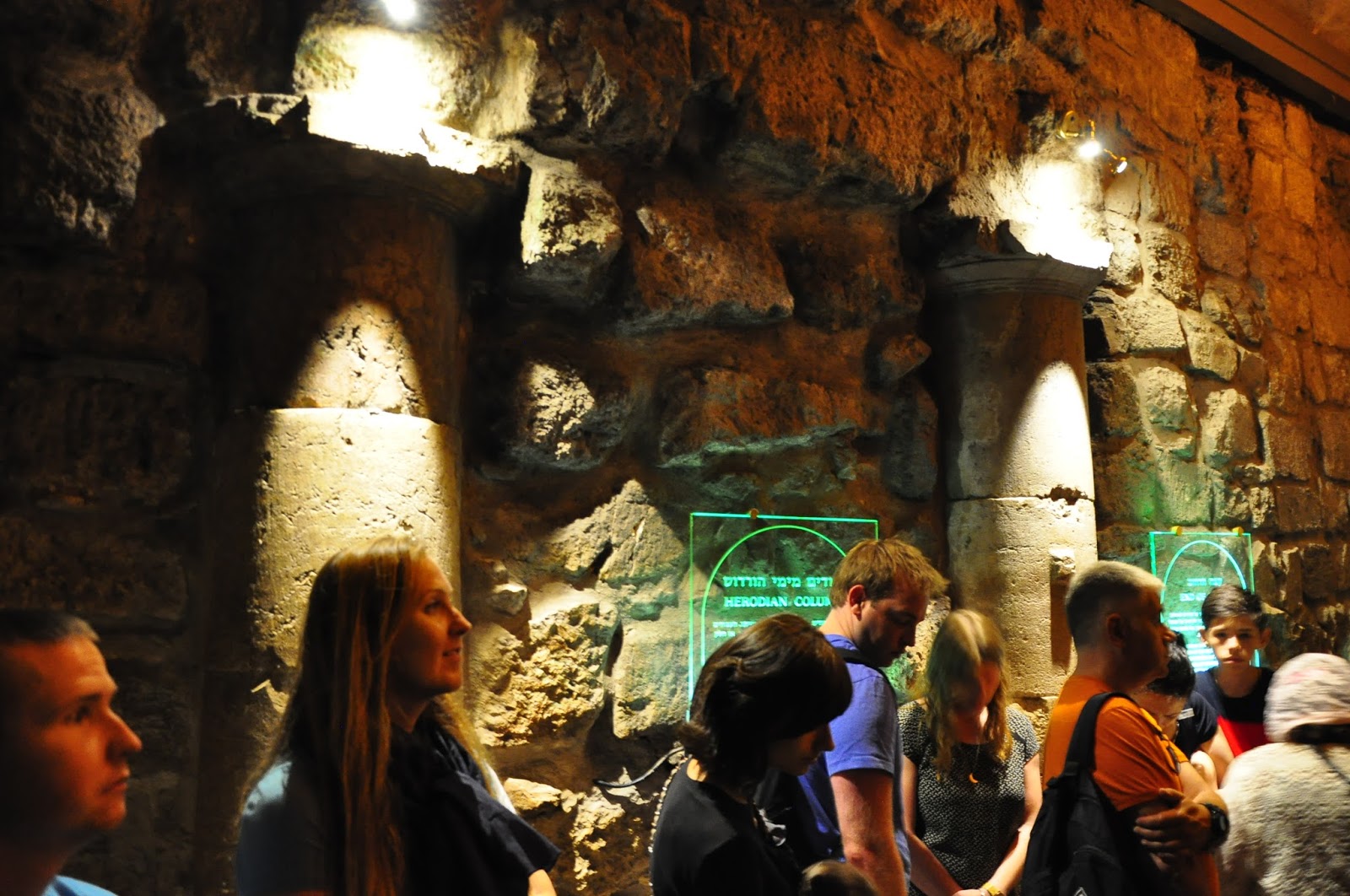 | Listening as our tour guide explains this section of tunnels was a street adjacent to the Temple Mount before the Romans encased it in arches to make a platform for the city above. |
