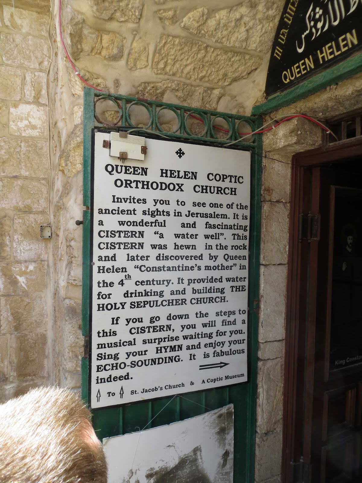 Church of the Holy Sepluchre. I am not going reiterate my visit to that church here, but instead want to talk about some of the other attractions in this Quarter. Probably my favorite being the Queen Helen Coptic Orthodox Church. This tiny little chapel is built above a water cistern used to provide drinking water to the builders of the