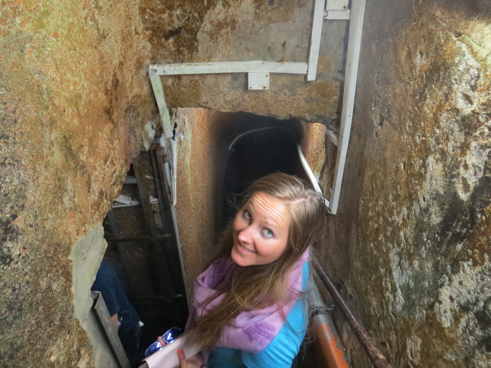 Climbing down to the water cistern below the Coptic Church. |