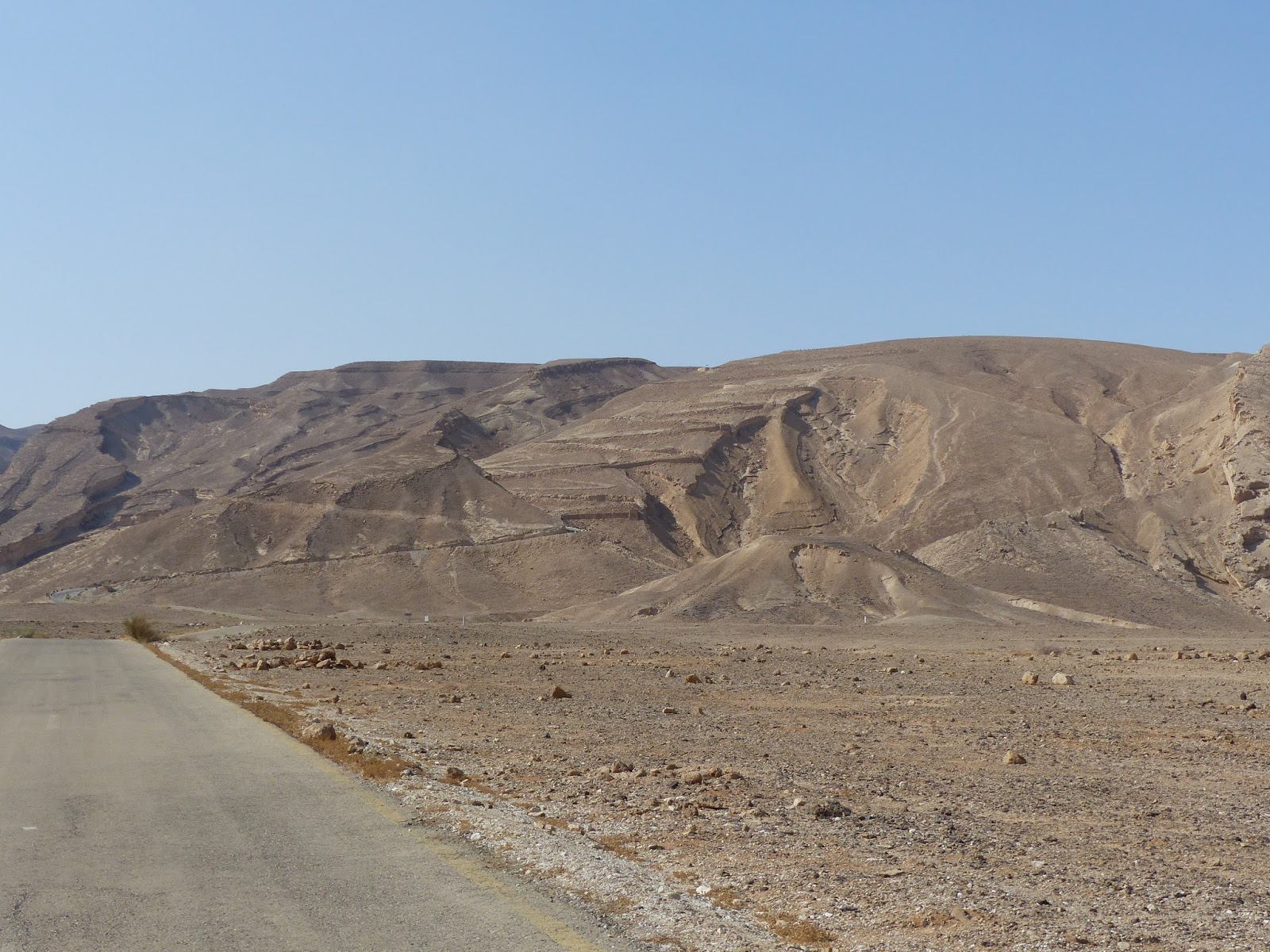 | The zig-zagging road of the scorpion's descent into the rift valley from Be'er Sheva to the Red Sea. |