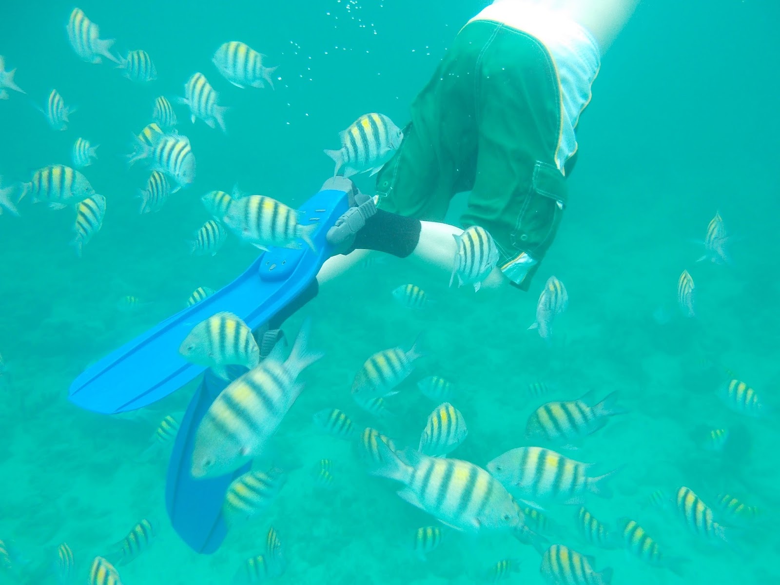 | So many fish swarmed us when we dove into the water near Nassau. |