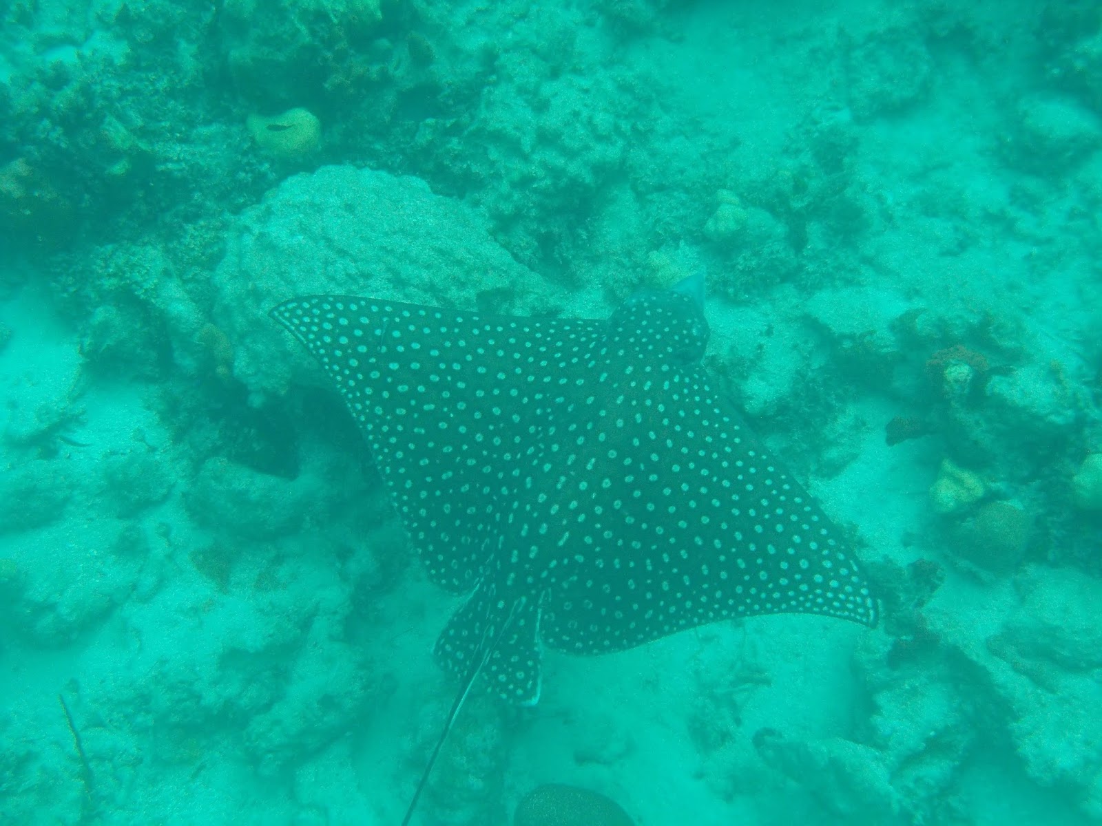 | An eagle ray which passed by as our snorkeling ended. Look at that tail! |