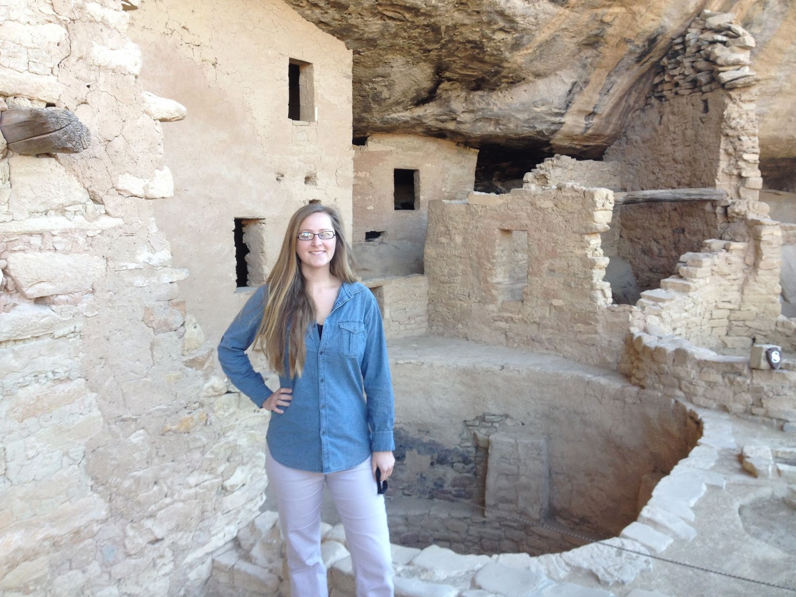 The main drawback to visiting this time of year is that tours of most accessible cliff dwellings are not offered, making those dwellings completely off limits to visitors. The only dwelling we were allowed to walk down to on the trip was Spruce Tree House. We joined a ranger led tour which gave an overview of the history of Mesa Verde on the trail down to the dwelling. Once at the dwelling we were allowed to wander around the structure taking photos and climbing down in a reconstructed kiva. A kiva was a cylindrical hole in the ground with a roof. The Ancestral Pueblo people descended into the kiva for ceremonial events, as they believed creation came from the ground.