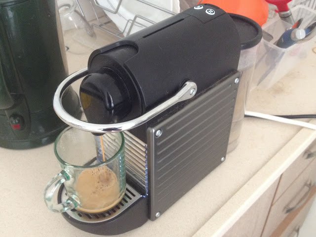 | A nespresso machine we borrowed while in Israel. These machines are the keurig cups of Israel. The preloaded pods allowed us to quickly make espresso at home. |