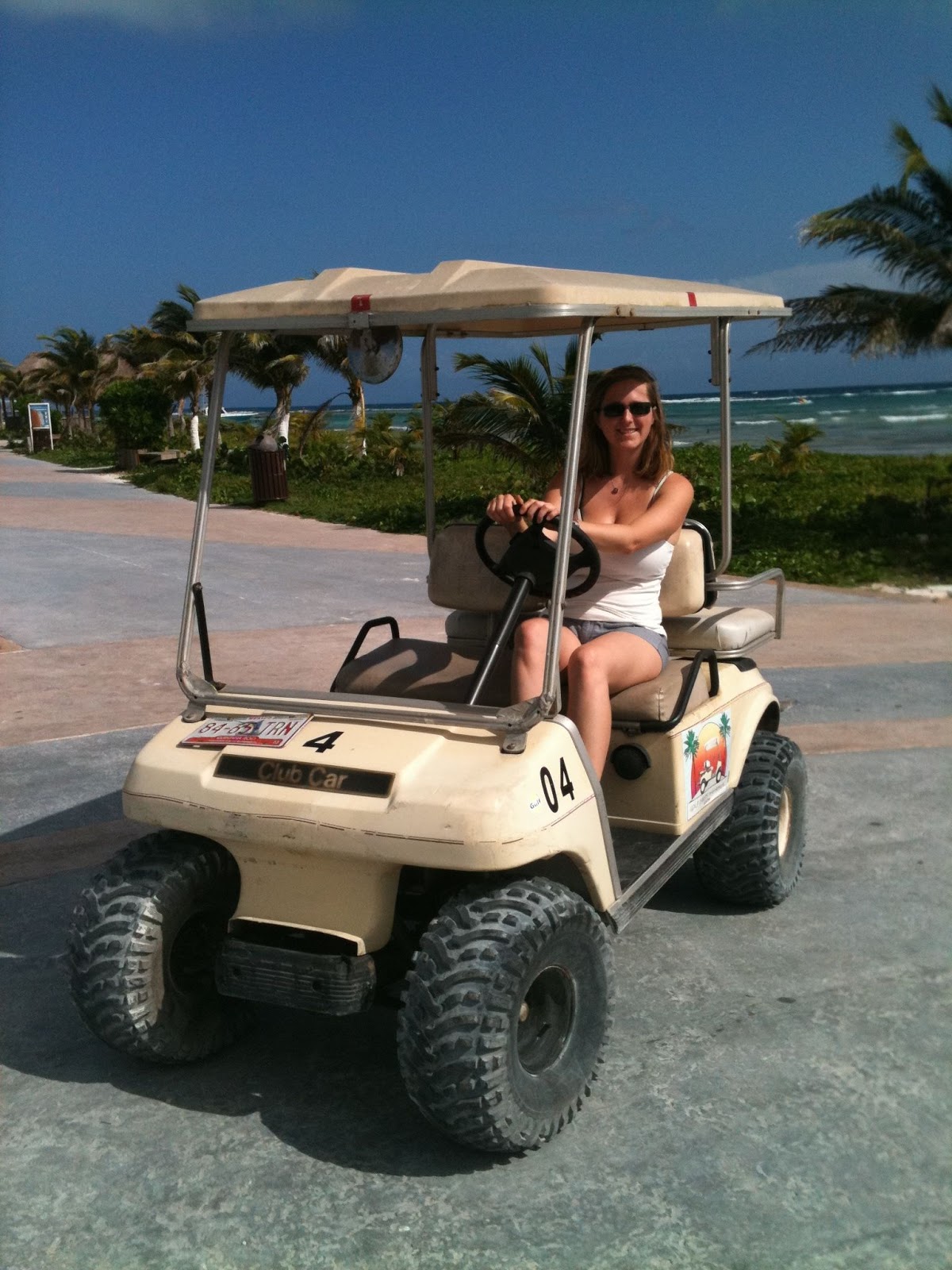 Driving the golf cart we rented to downtown Costa Maya.