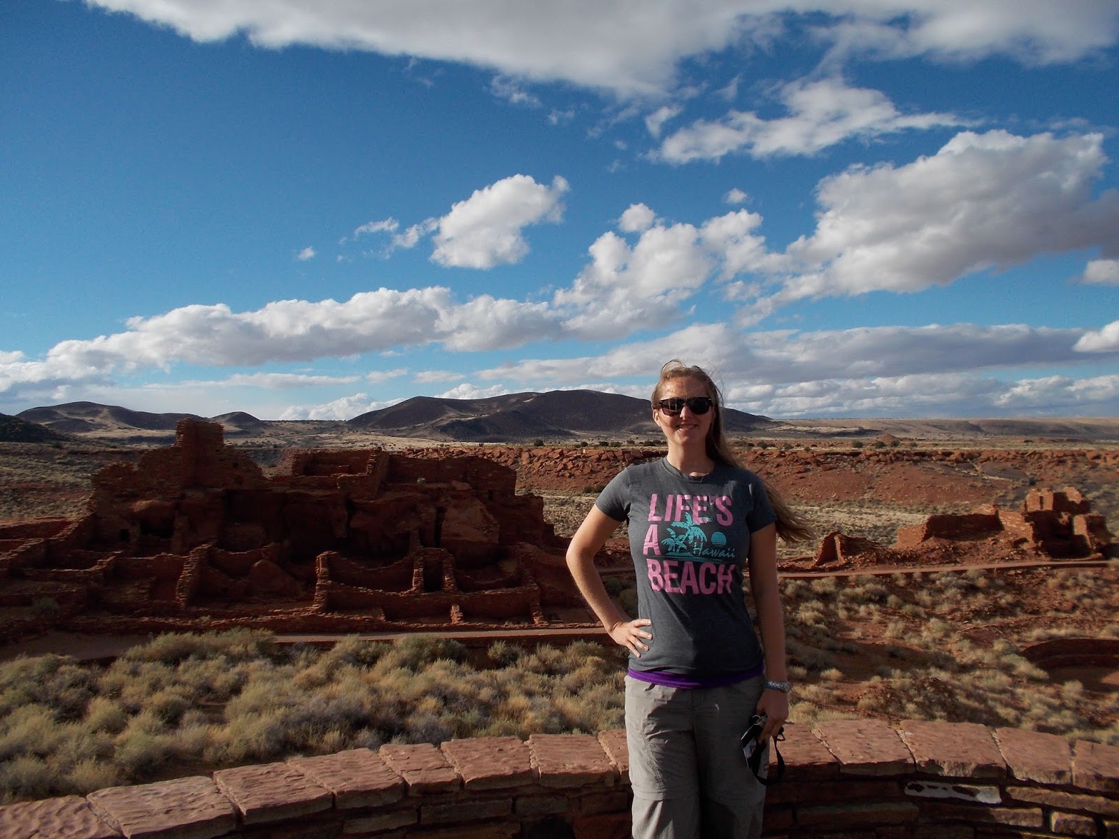 | Standing in the ball court at Wupatki north of the largest pueblo. |