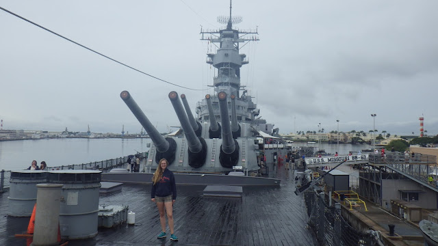 We toured the Missouri on a drizzly day which kept the crowds away and the battleship pretty much deserted. We climbed up to the officers' quarters in the bridge and down into the bowels below deck before ending on the perfectly maintained wooden decks where a plaque inset in the wood marked the place where US solidified its peace with Japan. After all the emotionally heavy settings of the memorials and museums about the Pearl Harbor attack, it was nice to see something symbolizing peace and hope.