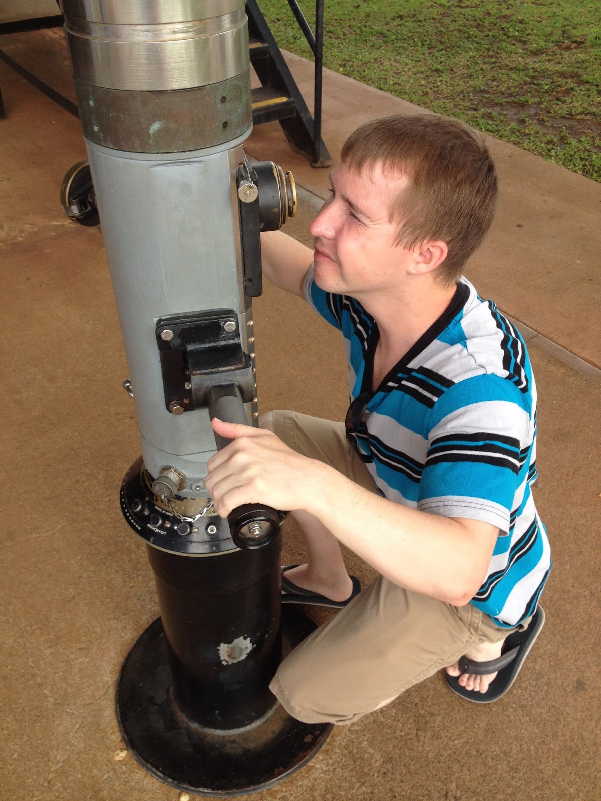 | My boyfriend David tests one of the exhibits in the museum section of Valor in the Pacific. |