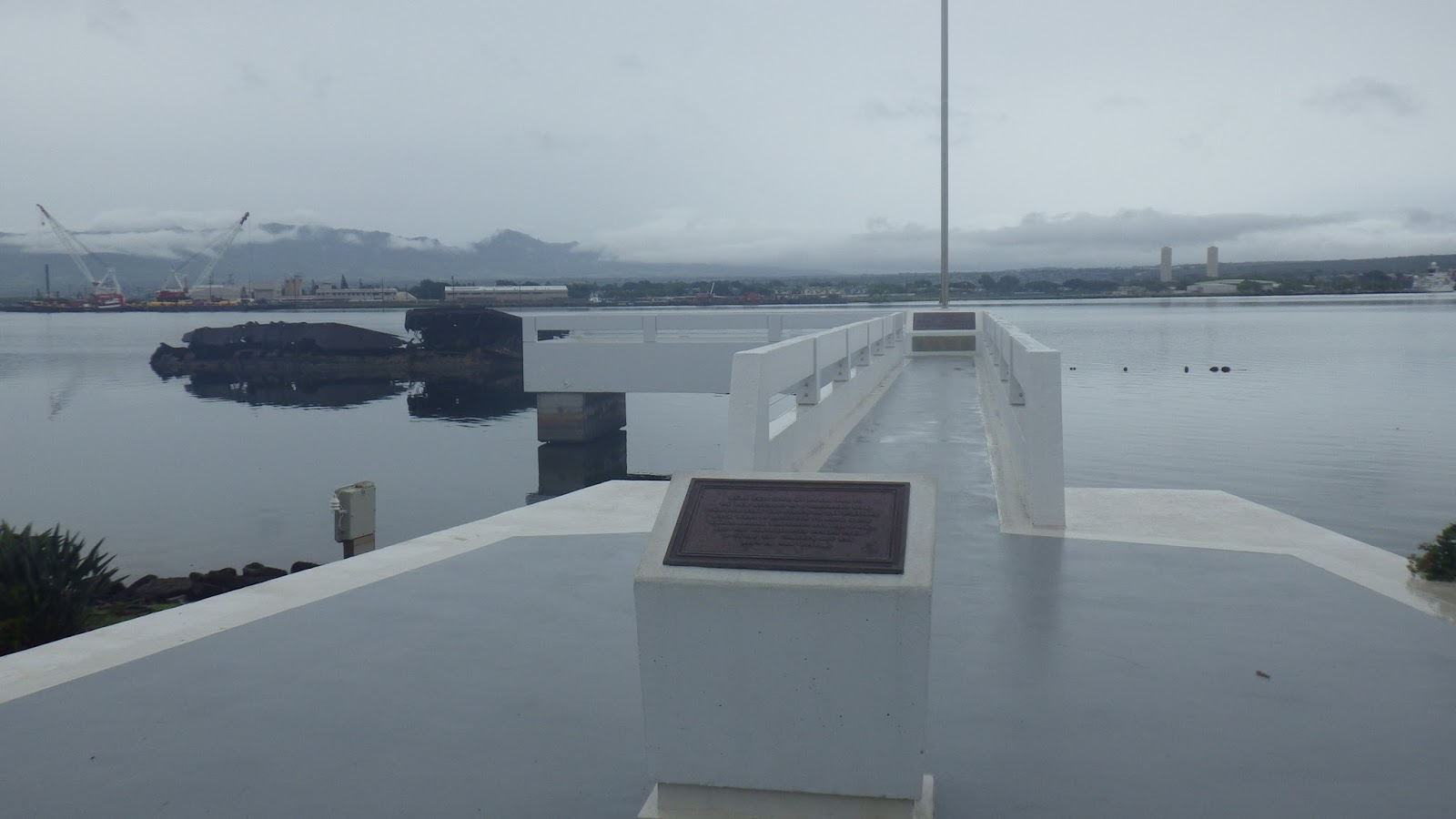 | The Battleship Oklahoma memorial. The sunken ship was salvaged years ago, and the memorial is located near the battleship Missouri museum. |