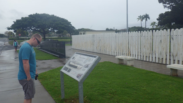 Visiting the Arizona Memorial was a very weird experience. It felt like when there is a lag in the conversation between myself and some one I just met. Neither of us can think of anything to say, and the silence is deafening. It's the same style of awkward I felt at the memorial. Visitors were generally very respectful and quiet (except for the baby getting changed in a corner). I couldn't decide whether I should spend my time looking at the sunken ship still leaking oil or reading the exhibits. I wound up going back and forth between the two until the ferry returned to pick us up.