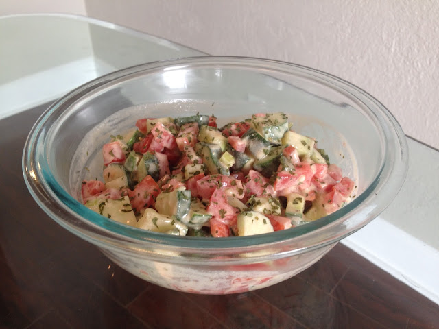 Israeli salad is only called Israeli salad in the US. In Israel it is called Arabic salad. I hope someone other than me sees the irony in that. Whatever its called, this salad is all over Israel, available in most restaurants, all falafel stands, and for takeaway at markets. I after seeing many of my coworkers bringing it to lunch. I decided to join them by making a large batch at home, and bundling a bowl to bring for lunch. I usually topped it with peanuts for a well-rounded meal although that is not typical.