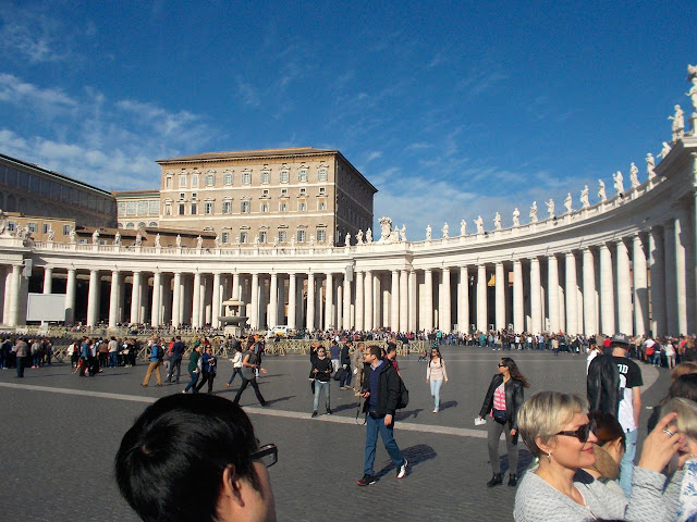 | The line to get through security (far left) into Saint Peter's Basilica wound half way around the square even on a week day in the off season. |