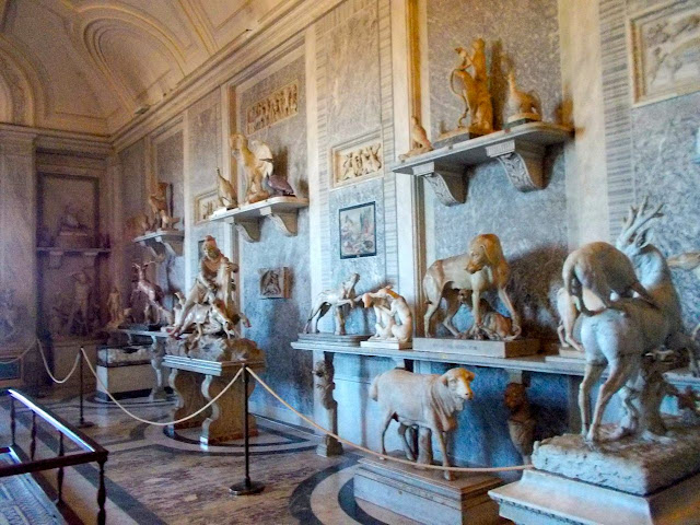 | This is the animal room of the Vatican Museum, named for the dozens of Grecco-Roman animal sculptures contained within its walls. The amount of art in the museums is numbing. |