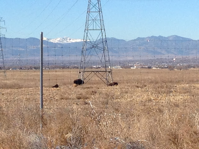 When David first suggested the arsenal, my reply was that I had no interest looking at guns for an hour. David then informed me that the arsenal was not what I thought it was, but rather a free drive through wildlife refuge just a few miles from downtown Denver. Although I was slightly concerned about driving through a buffalo paddock with our rental car we made the trip with the goal to see grazing buffalo. Unfortunately I only had my junky cell phone camera available, but I think the photos are clear enough to get an idea of our proximity to the animals.