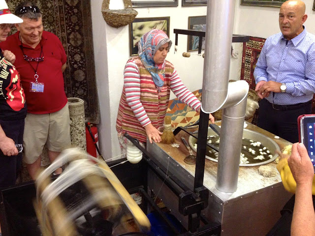 gave us a tour, including demonstrations of both silk spinning and weaving a