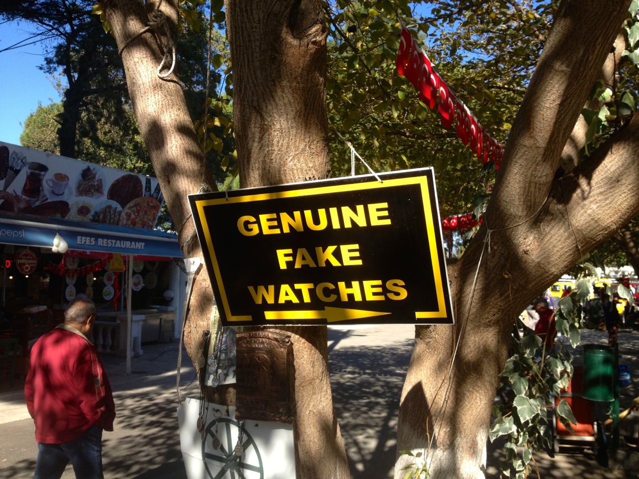 This sign at the exit of Ephesus pretty much sums up Turkey for me. We saw everything from fake accessories to fake spices. |