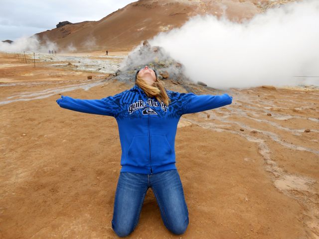 Evidence of volcanic activity is all over Iceland. Here I present a fumerole, a crack int he ground from which superheated steam fueled by hot magma beneath the surface escapes. |